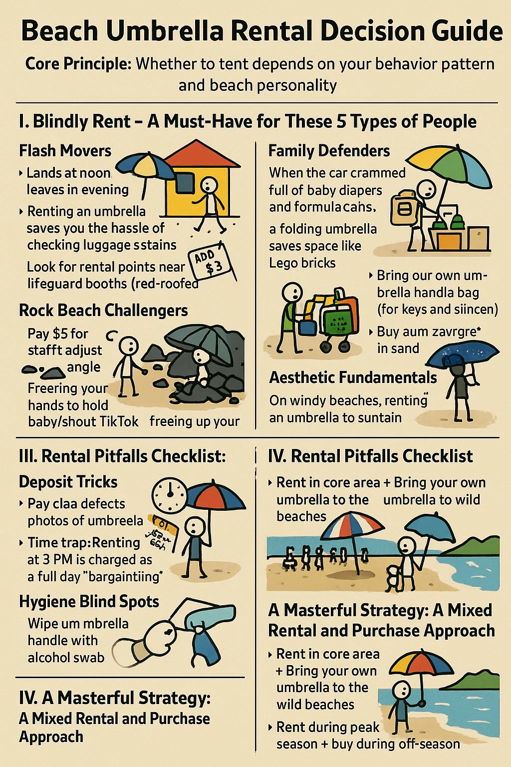 Rock Beach Challengers: Nem fér el a saját esernyő a vulkáni sziklás strandon → Bérlése egyedi gyártású, bővítőcsavarokkal rögzített esernyő: Erős lustaság esetén: Fizessen 5 dollárt a személyzetnek, hogy állítsa be a szöget és rögzítse az esernyőt, így felszabadítja a kezét a baba tartásához/TikTok-videók fotózásához. Kalandvágyó felhasználóknak: Béreljen egy oldalfüggönyös esernyőt ideiglenes öltözőnek, vagy béreljen fluoreszkáló esernyőt éjszakai cyberpunk strandfotózáshoz.