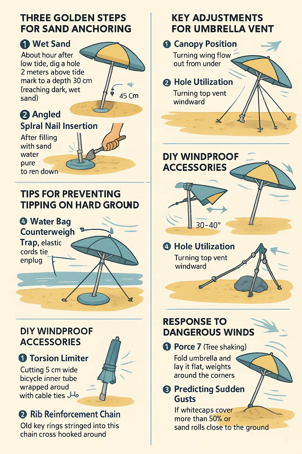 Az alábbiakban bemutatjuk a gyakorlati telepítési tippeket a tengerparti esernyő stabil és szélálló: