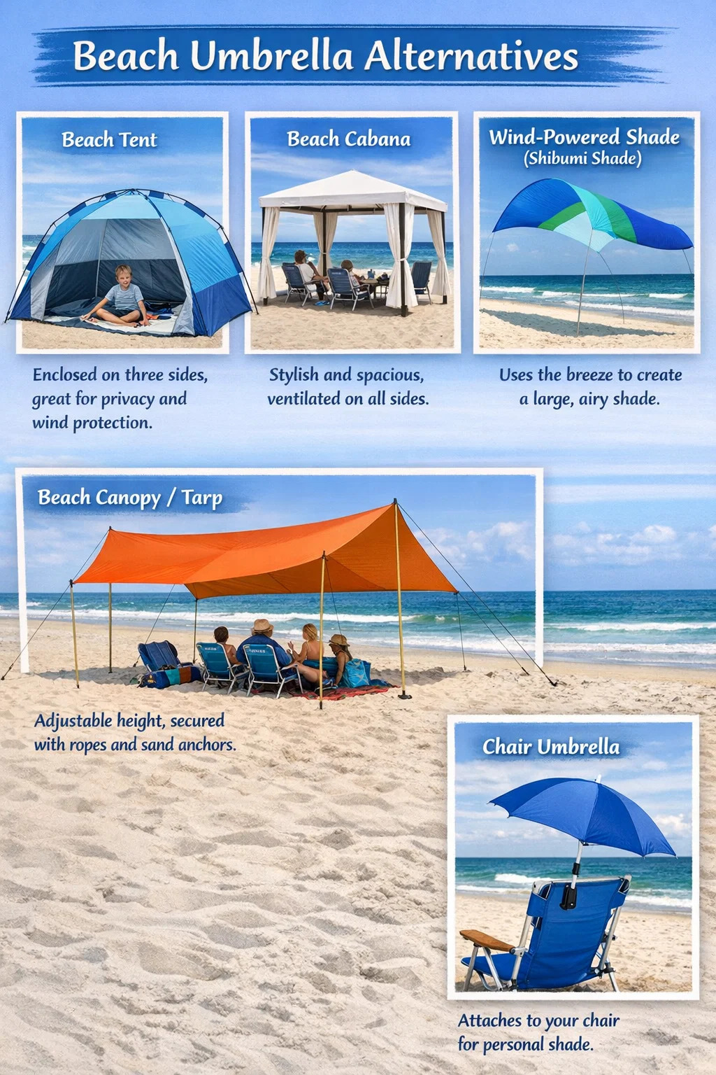 Ha túlságosan problémásnak találja a napernyő hordozását vagy felállítását, vagy attól tart, hogy elfújja a szél, sok stabilabb, nagyobb árnyékolt területtel rendelkező alternatíva áll rendelkezésre a piacon.